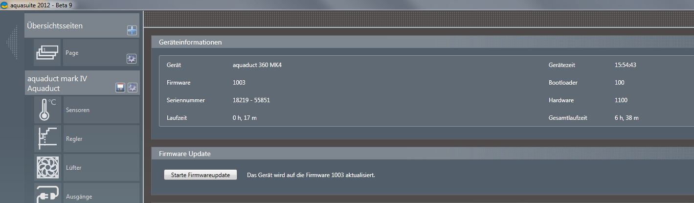 Und lt. Forum "aquaero 5 - Firmwareentwicklung / Fehlermeldungen, Update: Firmware 1018" ist 1018 die neuste Firmware. Aber vermutlich war das ja dann falsch.