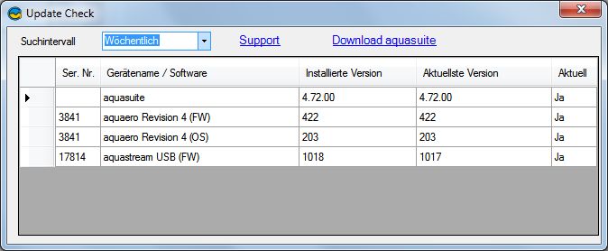 Das De- und Neuinstallieren der Aquasuite war die Lösung.