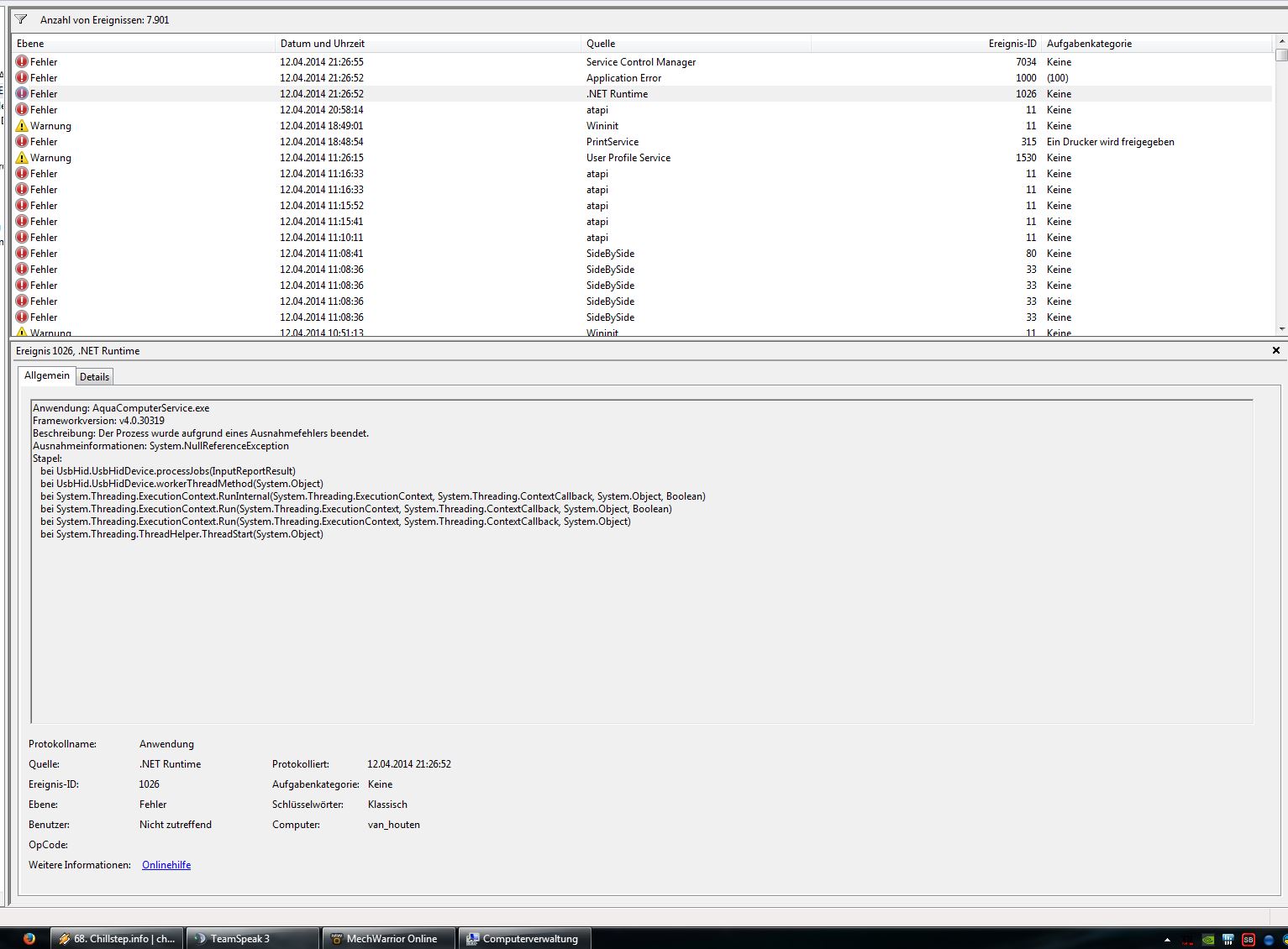 Aquacomputer Service stürzt immer wieder ab seit aquasuite 2014