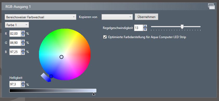 Ist es irgendwie möglich beim Regler " Bereichsweiser Farbwechsel "bei den beiden Farben auch eine getrennte Helligkeit anzugeben?