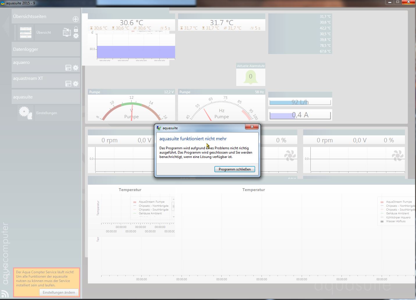 Dann habe ich das Upgrade auf aquasuite 2015-9 gemacht - und seitdem crash mir die Suite :(
