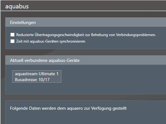 1. aquastream Ultimate: Angeschlossen an den "aquabus high" der aquaero
