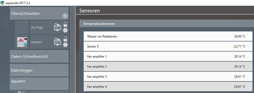 ich messe an meinem Aquaero 6 LT an der Sensorik 1 die Wassertemperatur zum Eingang meiner Radiatoren. Dort steht auch ein Wert zwischen Raumtemperatur und der Temperatur meiner GPU oder CPU, er pendelt sich i.d.R. bei 28° bis 32° C. ein - soweit so plausibel.