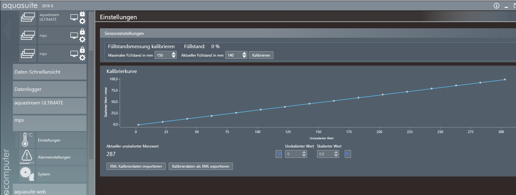 Füllstand bei aquainlet XT 150 kalibrieren