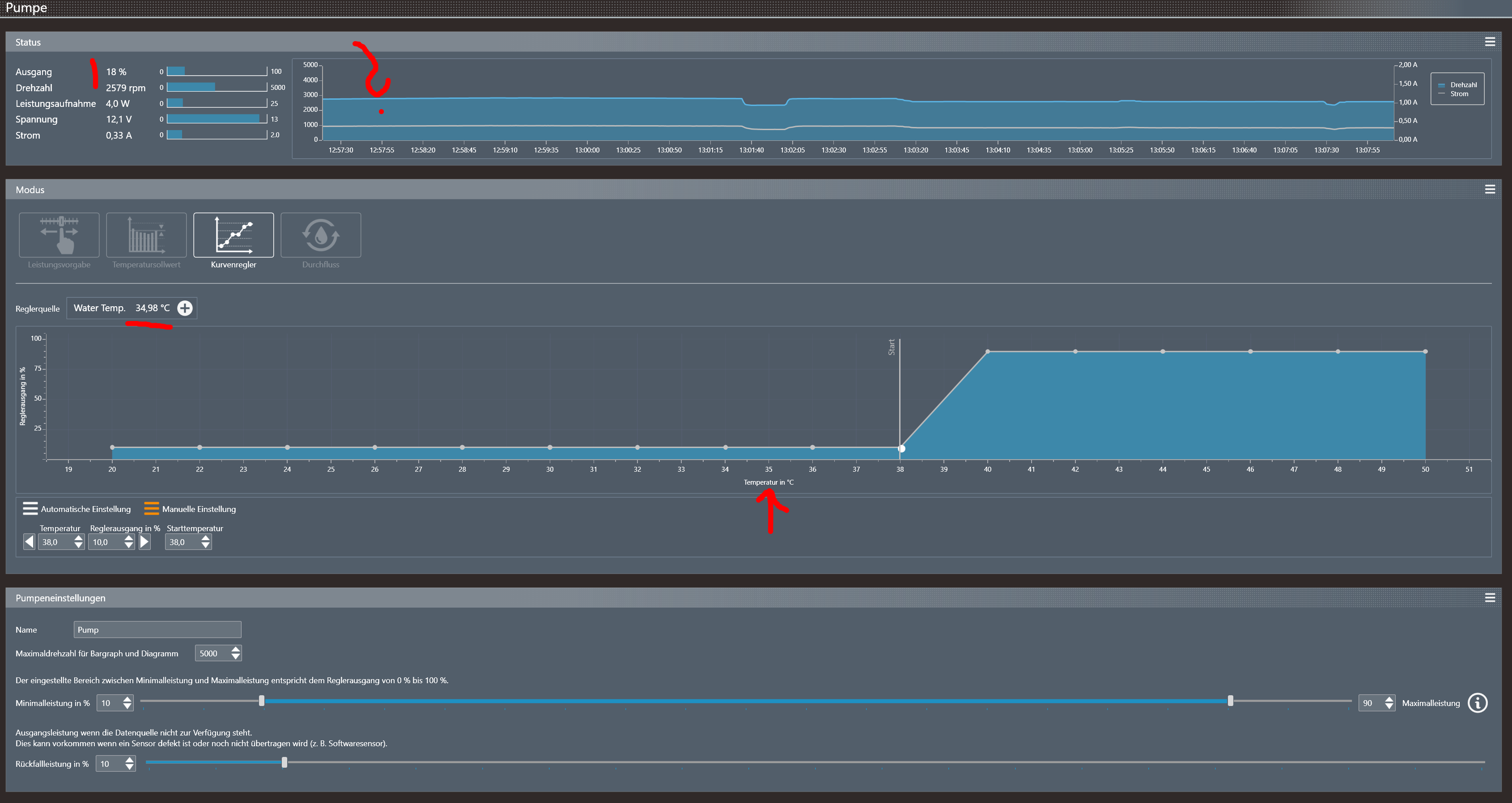 ich versuche, meiner D5 Next eine temperaturbasierte Pumpendrehzahl beizubringen, die eigentlich nur zwei Punkte bräuchte. Ich habe nicht herausgefunden, wie man in der Seite entsprechend die Punkte löscht und einfach das next-best-Thing konfiguriert: