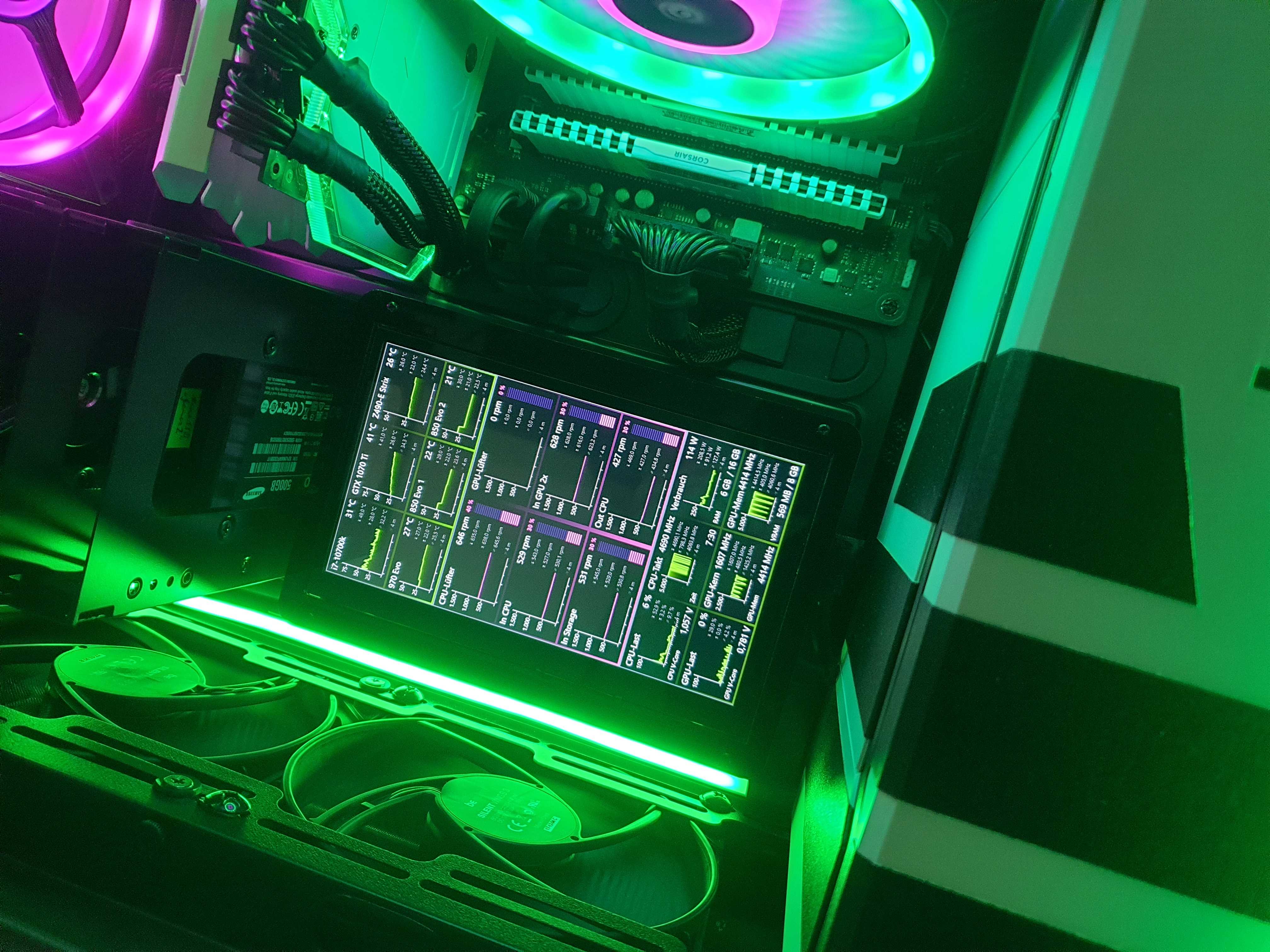 Zum Anzeigen der Infos nutze ich die AS, mit der man recht einfach einen schicken Status-Monitor hinbekommt (siehe Anhänge). Nur das Verlegen des HDMI-Kabels aus dem Gehäuse raus war etwas fummelig. Es gibt da wohl so etwas wie das Beada-Panel, was mit Aida64 und nur einem internen USB2.0-Header funktioniert, aber das Ding war recht teuer und ich glaube, man muss mehr Arbeit in das Design der Anzeigen stecken, als bei der AS. Da ist alles recht intuitiv. Ich hab für Kabel und Display jetzt etwas um die 80€ bezahlt.