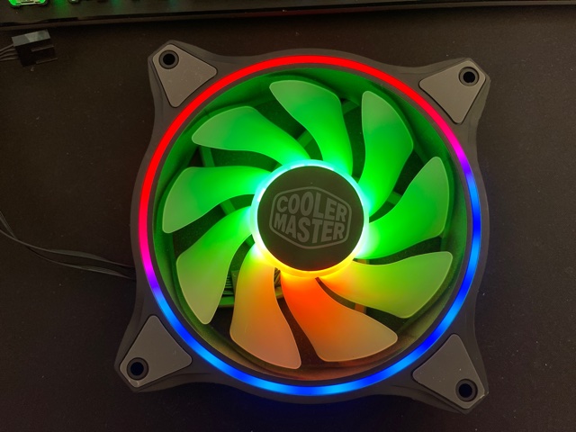 Deine MF120 Lüfter haben zwei unabhängige LED-Zonen, wie genau das funltioniert weiß ich allerdings nicht.
