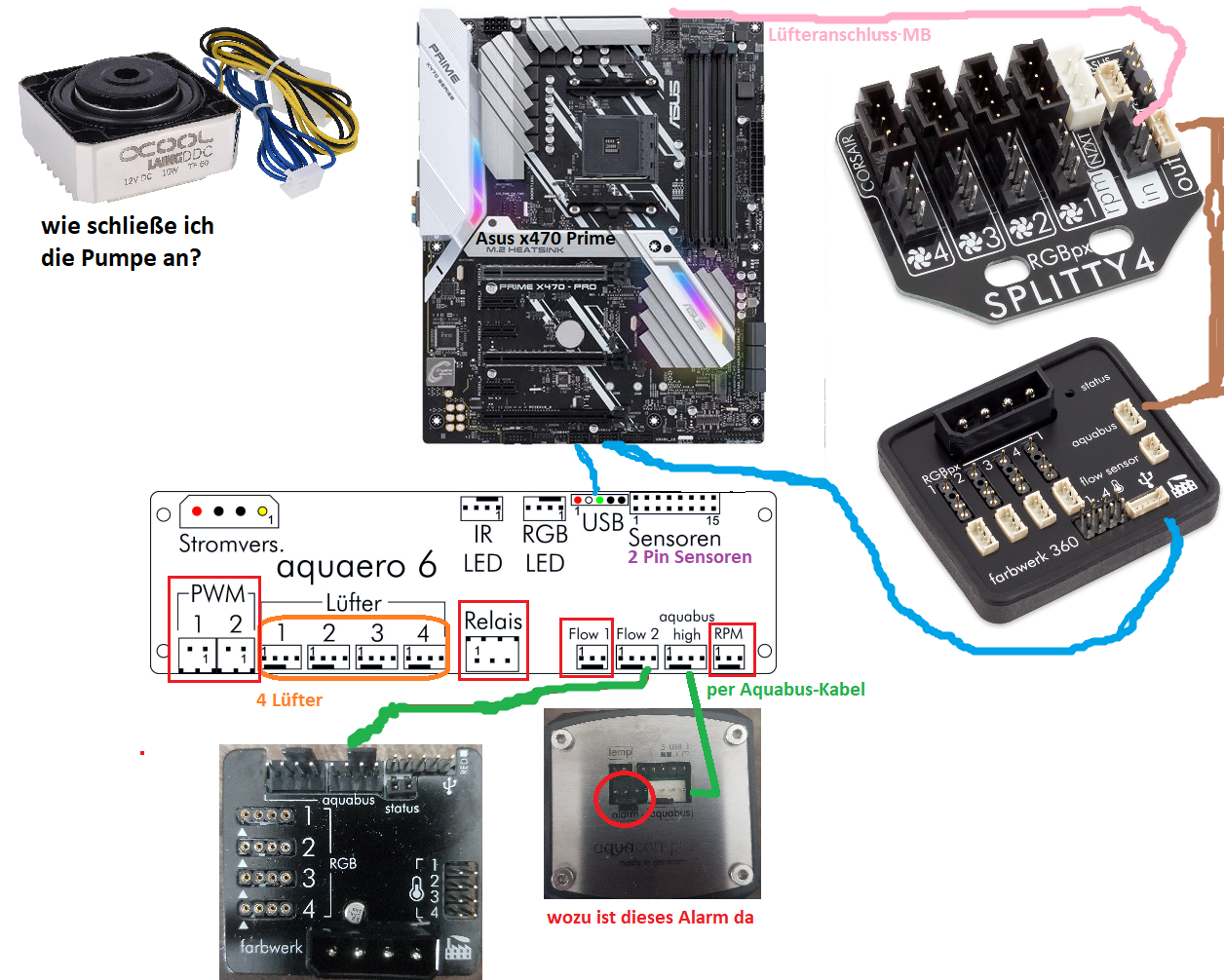 Benötige Hilfe bei Anschluss verschiedener Komponenten an Aquaero 6 bzw. MB