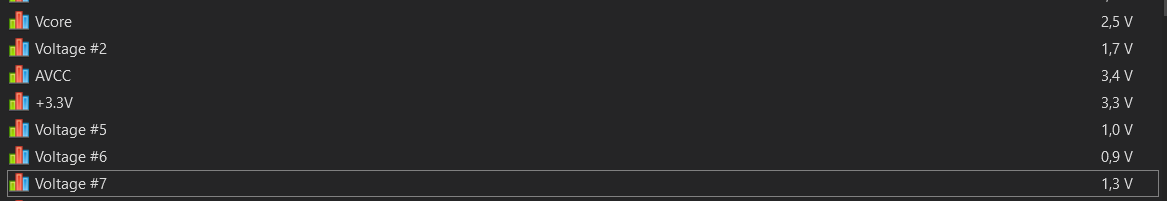 D.h. Dein Screenshot bezieht sich offenbar auf Werte, die vom Mainboard geliefert werden. Dazu ist zu sagen, dass die Mainboards sehr generische Werte auf den Datenbus legen, deswegen steht da auch bei Dir auch nur "Voltage 1", "Voltage 2" usw. Welcher tatsächlicher Sensor hinter welchen dieser Werte steht, verrät das Mainboard nicht über den Datenbus, das muss das jeweilige anzeigende Tool selbst wissen.