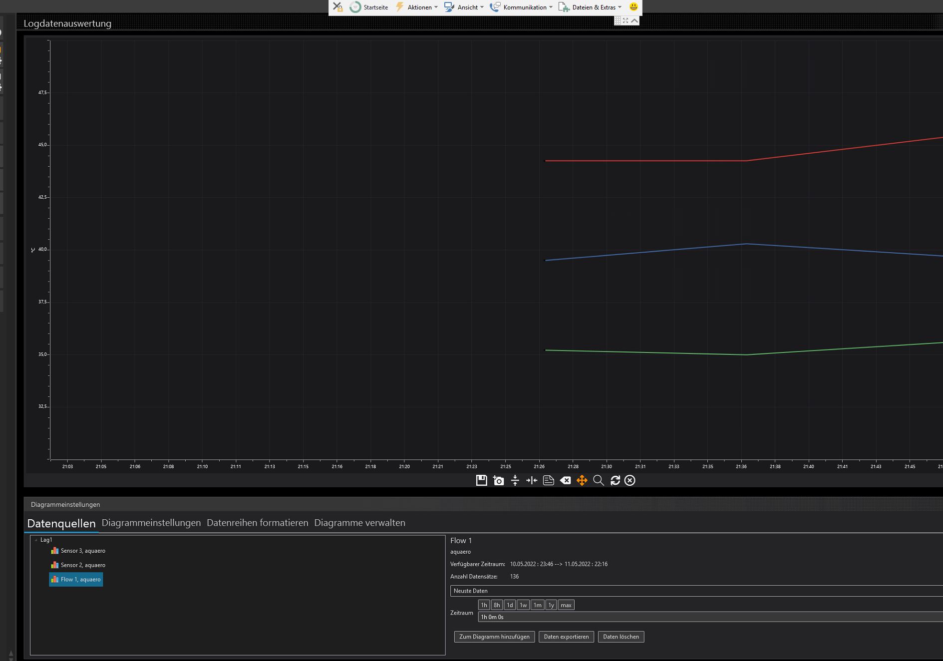 Ich möchte nun gerne über mehrere Tage die Wassertemperatur und den Flow loggen um zu schauen wie sich die Temperatur bei steigenden Außentemperaturen verhält.