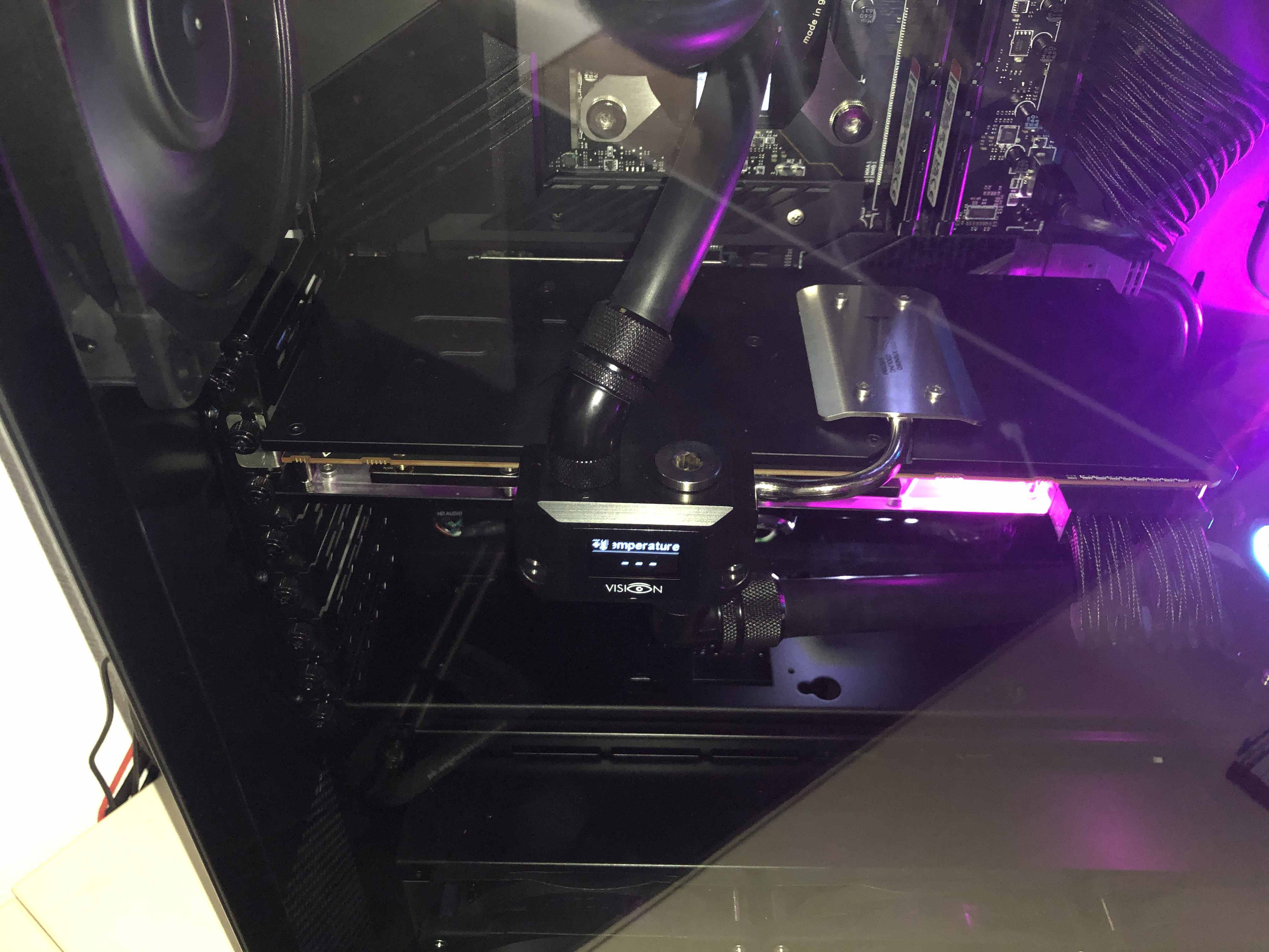 3. Das kryographics Vision Modul hat zwar einen Anschluss für einen Temperaturfühler, den musst Du aber selbst irgendwo installieren und anschließen. Das Teil z.B.: https://shop.aquacomputer.de/product_inf…roducts_id=3589 wenn Du die Wassertemperatur messen willst (optimal am AUSGANG des Kühlers montieren, wenn Du wissen willst, wie stark die GPU das Wasser erwärmt).