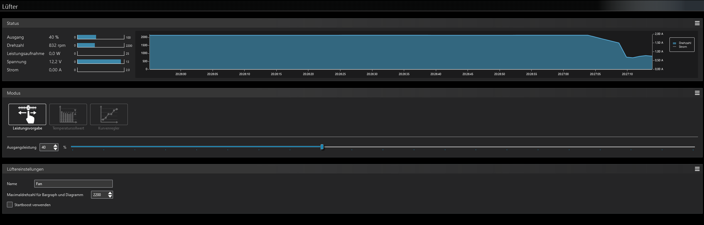 2. auf Leistungsvorgabe wechseln -> Lüfter drehen runter