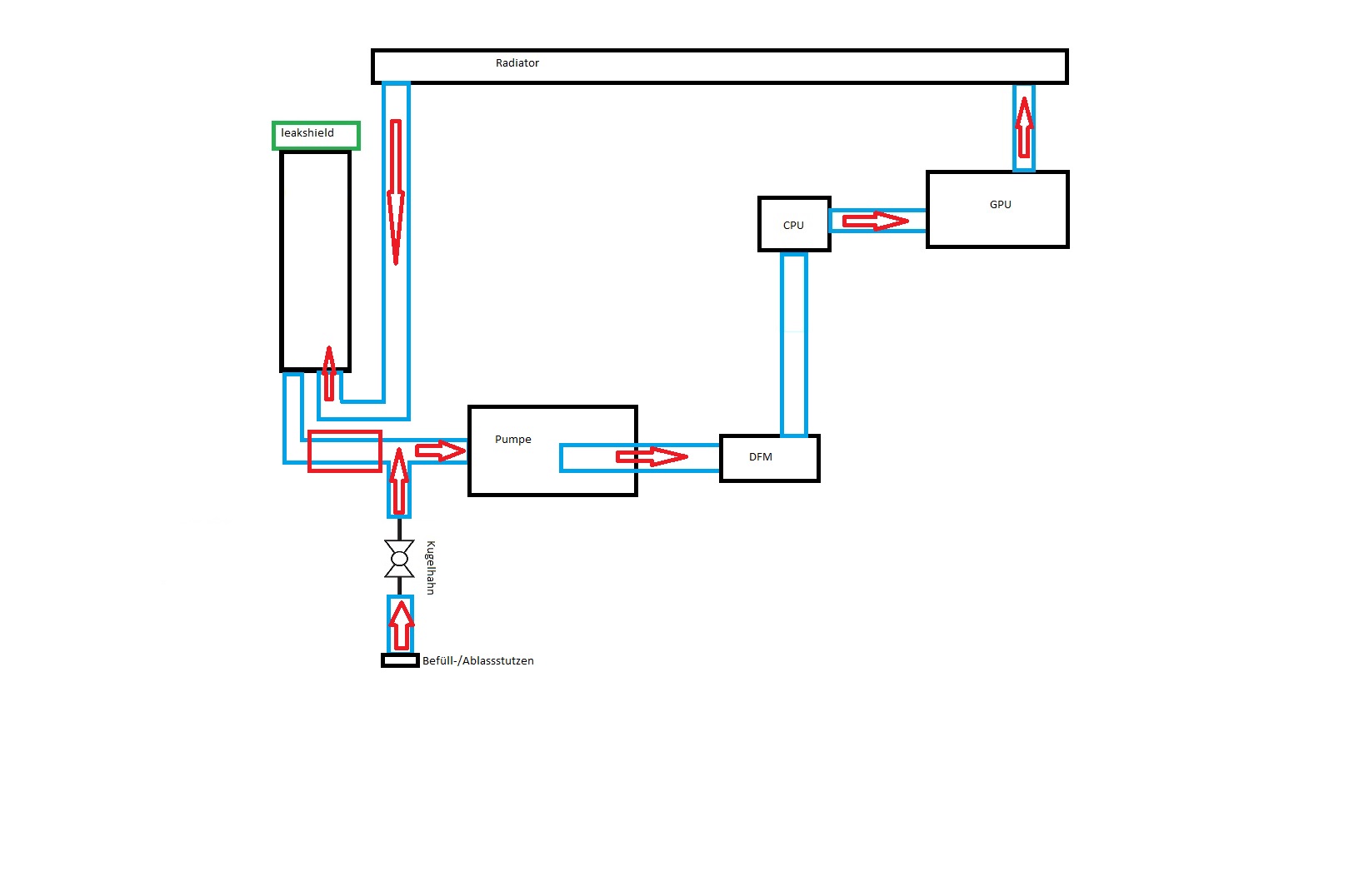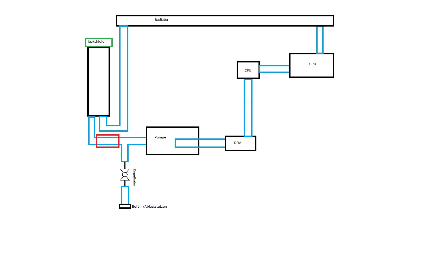 ich bin kürzlich über das Leakshield gestolpert und bin am überlegen, wo ich das in mein Case implementieren könnte. Aktuell liegt ein AGB über der Pumpe. Wenn ich jetzt einen zweiten AGB samt Leakshield links neben die Pumpe, unten im Case platziere (siehe Bild), wird dieser vermutlich u.U. volllaufen oder? Eine andere Möglichkeit wäre, den 2. AGB links oben am Case zu befestigen, da wo jetzt mein "Füllstutzen" lang geht. Wäre optisch nicht meine präferierte Wahl, aber machbar. Habt Ihr noch Ideen wie ich das Leakshield implementieren könnte? Z.B. Standalone irgendwie in das bestehende System einbinden oder irgedneinen flachen/dünnen AGB den ich zwischen Frontblende und Case "quetschen" kann?