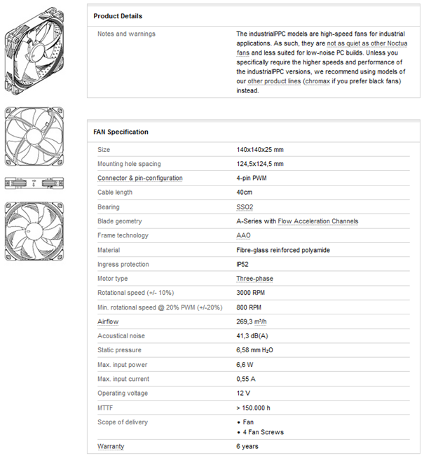 Der Rest sind Noctua NF F12 Industrial PPC 3000 PWM (Hier läuft alles wie gewünscht)