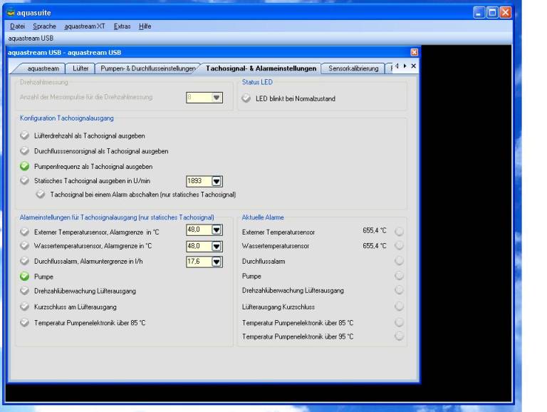 Der interne Temp. Fühler zeigt auf dem Reiter Aquastream nur --C° und auf dem Tachosignalreiter 644C° ;( aber interner und externer Fühler.
