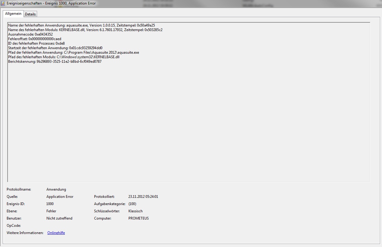 Sporadische Abstürze beim Start von Aquasuite zusammen mit Windows