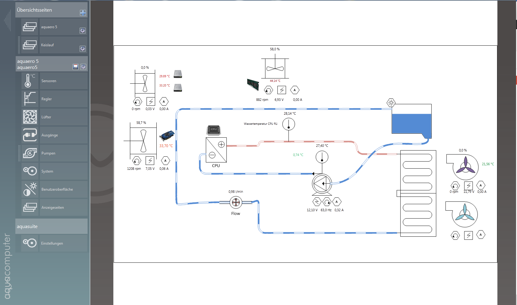 Mit MS Visio hab ich das gezeichnet. - Die Animation der Komponenten wäre der nächste Schritt, lediglich weiß ich nicht ob ich in der AquaSuite GIFs einbinden kann, sie sogar ggf. von einer Drehzahl > 0 abhängig machen kann.
