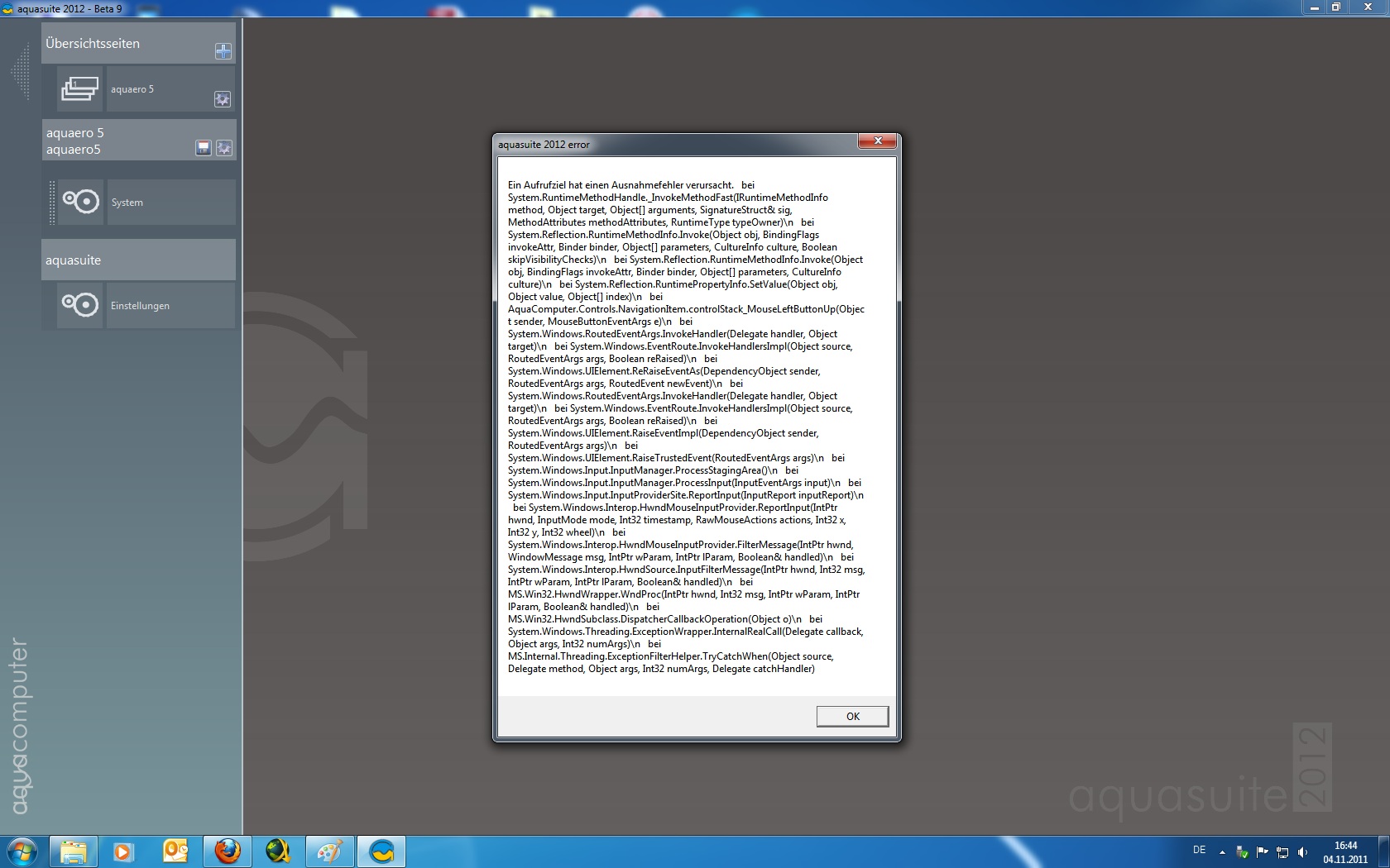 Der "Energie sparen" Bug existiert allerdings immernoch. Nach dem ca. 3. Aufwecken eben aus dem "Energie sparen" Modus von Windows 7 64bit, sieht die Aquasuite folgendermaßen aus und alle Lüfter drehen auf Maximum:
