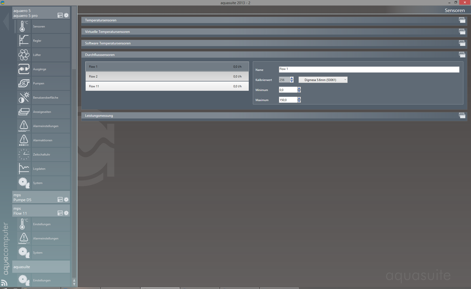 Wie bekomme ich den Durchfluß bei den Senoren der Aquasuite angezeigt ?
