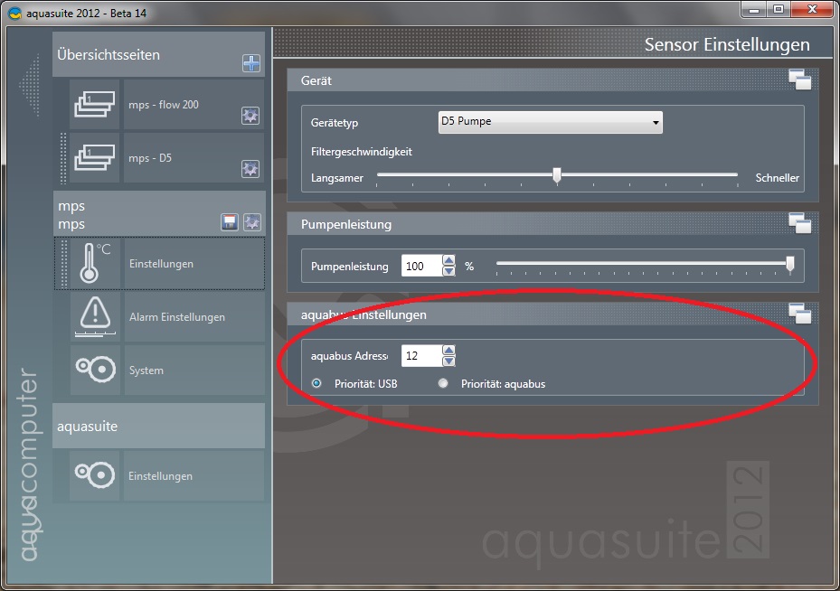 Sprich MPS flow auf 12 und deine D5 (mps) auf 13 einstellen wenn beides am aquabus angeschlossen wird.