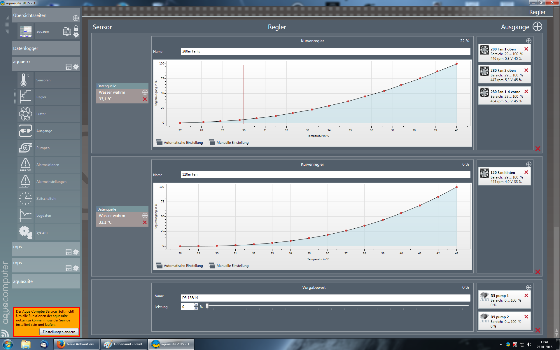 Die schwanken sehr schnell, was selbst bei stufenförmigen Kurven zu häufigen Schaltvorgängen an den Lüftern (nicht PWM an den Lüftereingängen 1-4) führt. Ich bin mir nicht sicher, ob die Lüfter das auf Dauer mögen.