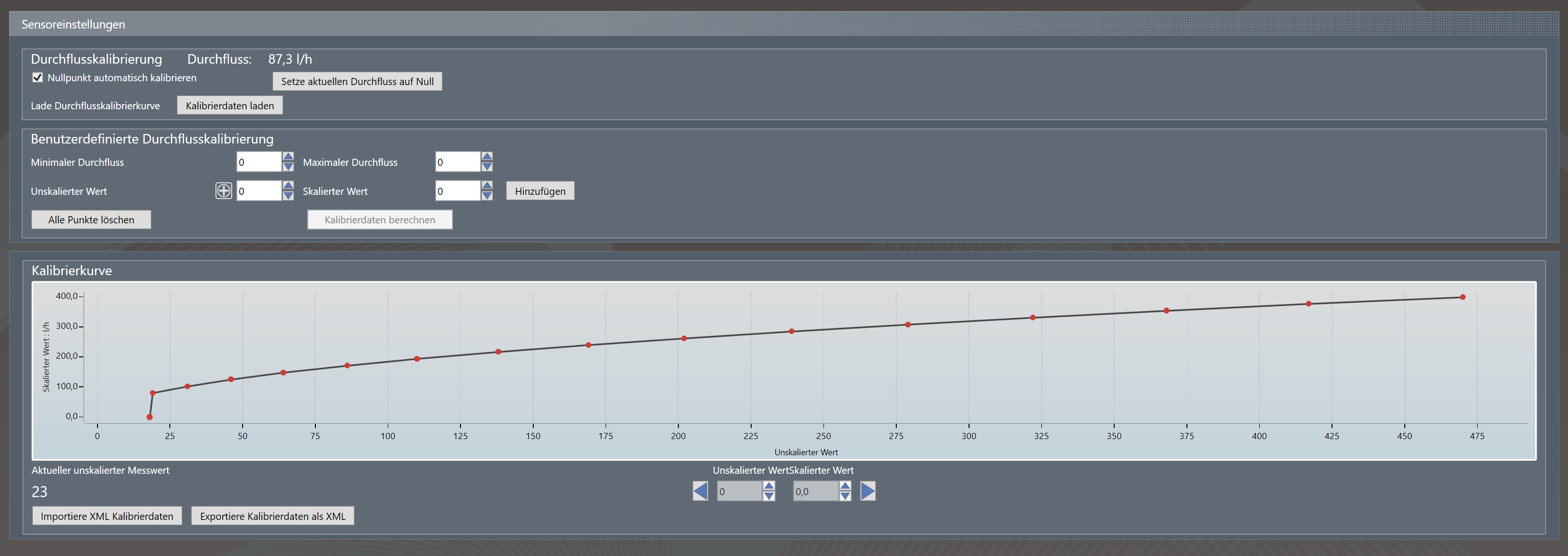 Leider sieht die Einstellungsseite im Bereich der Kalibrierungskurve komplett anders aus wie im Handbuch (siehe Screenshot)