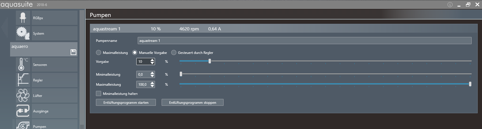 Wenn ich nun in die Pumpensteuerung gehe, kann ich ja die Leistung der Pumpe regeln, wenn ich die Vorgabe auf 10% nehme nimmt er das auch an aber das RPM Signal bei 4620 wen ich die Vorgabe nun auf 73% nehme ist die RPM Anzeige immer noch bei 4620 rpm der Strom ändert sich auch nie :(