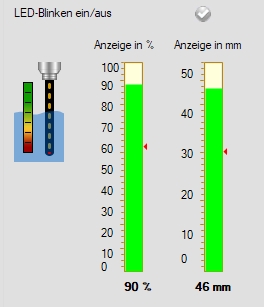So zeigt es Füllstand 100% an.... nehme ich das Tubemeter aus dem Glas raus fällt der Füllstand auf 0%.
