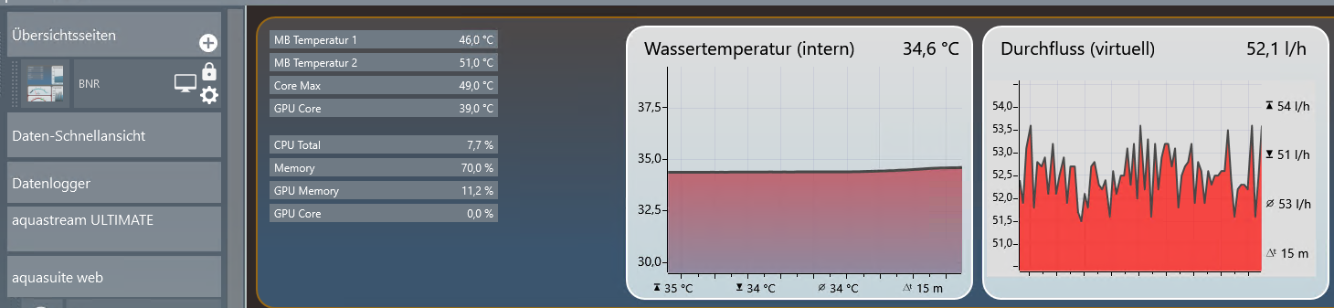 Bild1 Zeigt aquasuite auf dem Server. Die Werte werden dort angezeigt