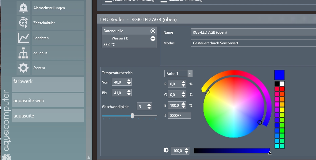 Ich habe nichts geändert ausser die Aquasuite vor Monaten nochmal komplett neu einzurichten weil ich das Teil aus versehen irgendwie zurückgesetzt hatte. Leider existiert auch kein Backup von den damaligen Einstellungen. Am auch beleuchteten Wasserfilter hängt eine zusätzlich direkt am Aquaero angeschlossene, auch temperaturgeregelte RGB-LED. Bei dieser verstellt sich nichts nach dem Aufwachen aus dem Standby. Also kanns mit dem zu spät initialisierten USB-Wert des Sensors schon mal nichts zu tun haben. Der Unterschied ist nur, dass bei dieser LED direkt der Wassertemperaturwert des Sensors angewandt wird und nicht über den Umweg des Virtuellen Sensors. Ich bekomme das aber im Farbwerk nur hin mit einem Virtuellen Sensor weil der tatsächliche nicht zur Auswahl steht. Vielleicht liegt da der Hund begraben...