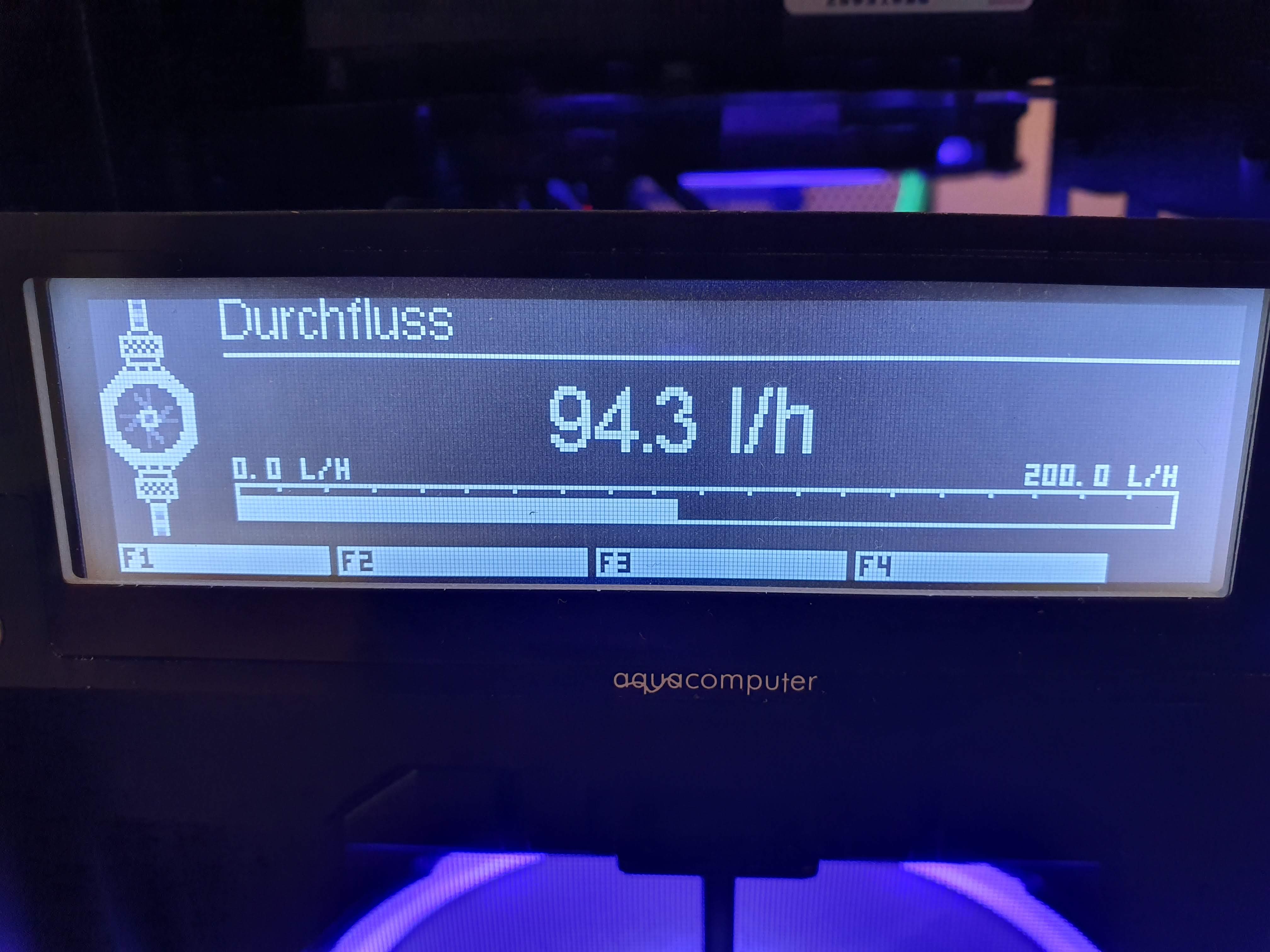 Wie in den Bildern zu erkennen, zeigen die Aquaeros zwei verschiedene Durchflüsse an. Beim Aquaero 6 ist der Aquacomputer Durchflusssensor "high flow" eingestellt und die Pumpe läuft bei 2300 Umdrehung pro Minute. Was ist der korrekte Durchfluss