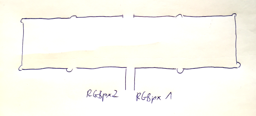 Je 5 Stripes hängen an RGBpx 1 und 2. An den Monitoren in Reihe von Mitte unten -> außen -> Mitte oben.