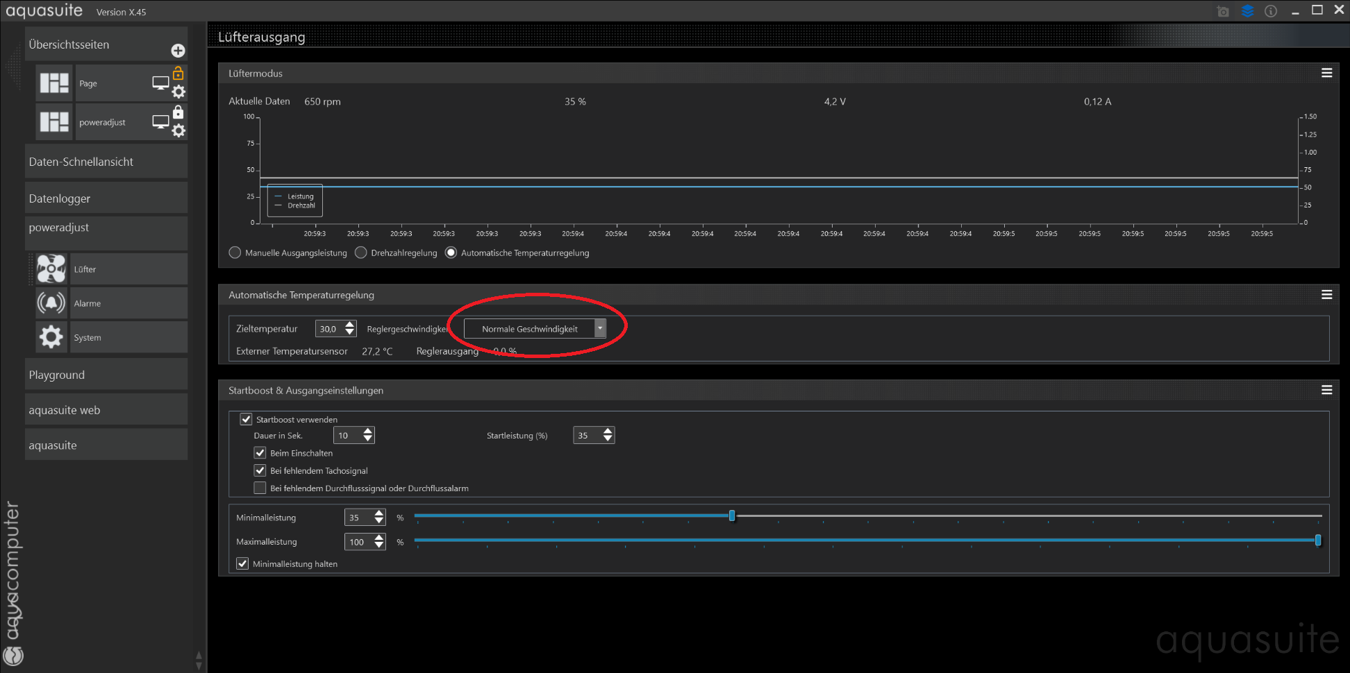 Zudem wird du den Startboost bei dir aktiviert haben, wodurch die oder der Lüfter nach dem absenken auf die Minimalleistung wieder voll aufdreht und dann erneut versucht seine Leistung auf die eingestellte Mindestdrehzahl(%) zu senken.