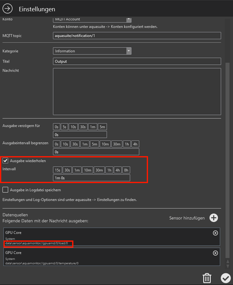 ich bin auf der aktuellsten AquaSuite unterwegs und versuche gerade, die Werte des Rechners regelmäßig auf MQTT zu legen, dabei stolpere ich leider über 2x Probleme: