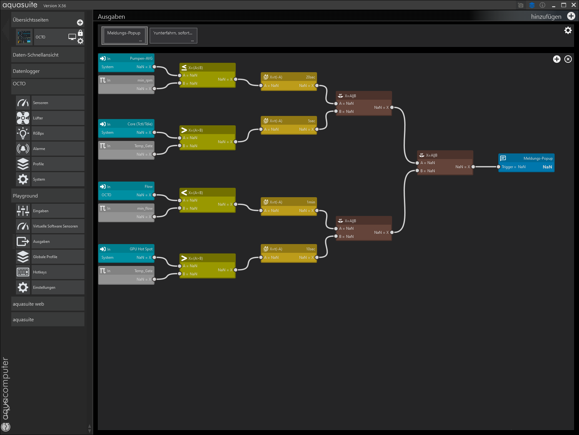 im playground / ausgaben existiert aus quadro zeiten solch eine ausgabe ja, mit vier quellen als auslöser für alarme / herunterfahren und individuellen verzögerungen.