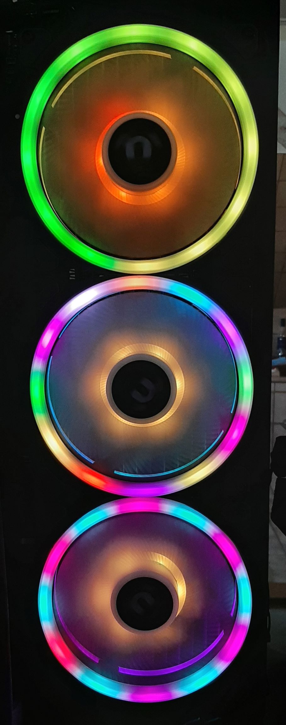 Ergebnis des ganzen ist dann ein Effekt der nur über die Rahmen aller 3 Lüfter geht.