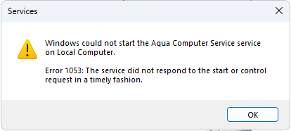 Manchmal wird noch nicht einmal der Aqua Computer Service registriert - und auch wenn ich das manuell mache, dann lässt er sich danach nicht starten: