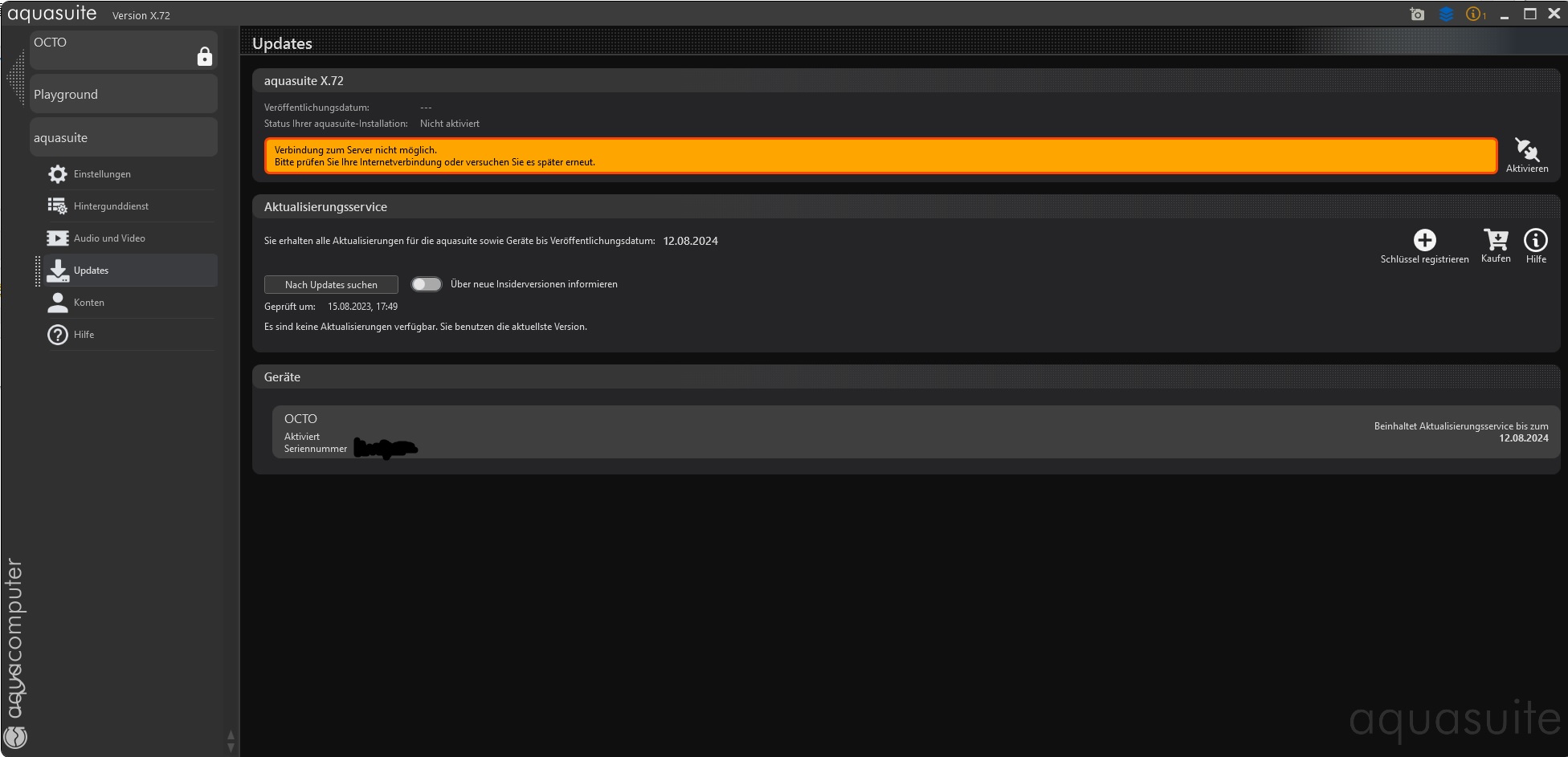 Aktualisierungsservice bis 12.08.2024, heute früh update auf X71 und aktiviert, gerade eben update auf X72 - Aktivierung nicht möglich. Keine Fehlermeldung. Kiste nicht nutzbar - jeder Lüfter auf 100%. Ich hatte eh schon einen gebrauchten Tag und nun das. Wenn das wieder läuft werde ich wohl von zukünftigen Aktualisierungen Abstand nehmen. Sorry, aber ich bin echt pissed.