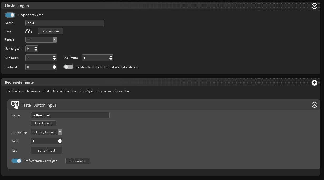 Hatte ich mir schon gedacht, dass das nur mit den Input-Einstellungen nicht geht. Ist halt damit nicht wirklich ein Taster, sondern ein Schalter, denn der Input selbst bleibt auf dem Wert stehen (zeigt das auch als "1" oder "0"), bis man manuel wieder drückt.