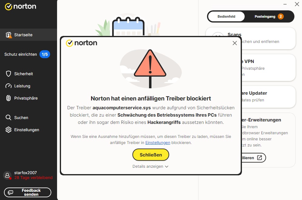 Seitdem ist Norton für mich erstmal gestorben das Produkt ist seit Version 24.x unbenutzbar.