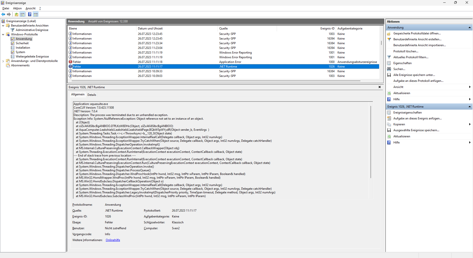 ja ich fahre den rechner normal runter und schalte ihn dann sozusagen über steckdosen die über einen schalter verteilt sind aus . das proböem tritt aber erst seit nem monat auf . und rechner sind schon seit 7 jahren da angeschlossen und da war das problem nie. kann ich den hintergrunddienst starten und danach erst die aquasuite starten?selbst wenn ich bei laufendem rechner die aquasuite im administrator starte bleibt es so . ändert sich erst nachdem ich hintergrunddienst ausgewählt habe und gestartet habe. steht da das keinen kontakt zum service besteht