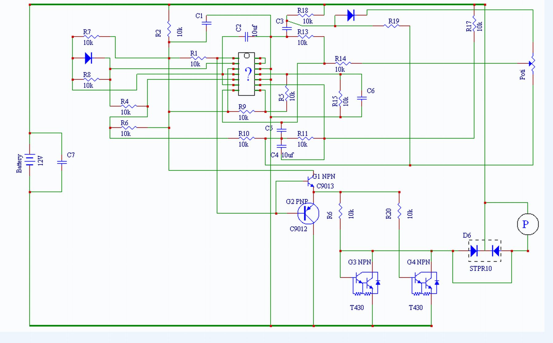 . Die zweite Schaltung erzeugt ein (einstellbares) Sägezahnsignal das mit der dritten Schaltung in ein Rechtecksignal umgewandelt werden kann. Wenn deine Pumpe mit 12V arbeitet bietet es sich an die Versorgungsspannung für die beiden Schaltungen auch gleich bei 12V festzulegen, alles was du dann noch brauchst ist ein MOSFET, die meisten lassen sich mit bis zu 20V ansteuern und die 8A stellen auch für den Grossteil kein Problem dar. Die Schutzdioden würd ich auch übernehmen, bin mir grad auch nicht sicher obs da noch irgendwo einen Vorwiderstand braucht...Dieser Beitrag wurde bereits 1 mal editiert, zuletzt von »Manni24« (1. August 2012, 09:43)