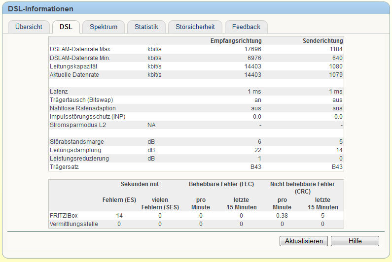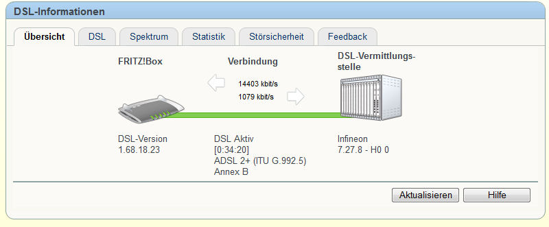 So, hab gerade meine Fritzbox 7390 angeschlossen. Schneller ist der DSL nicht geworden, liegt an den 1,5km Leitungslänge. Aber 14,4MBit ist ja auch annehmbar... :D ;)