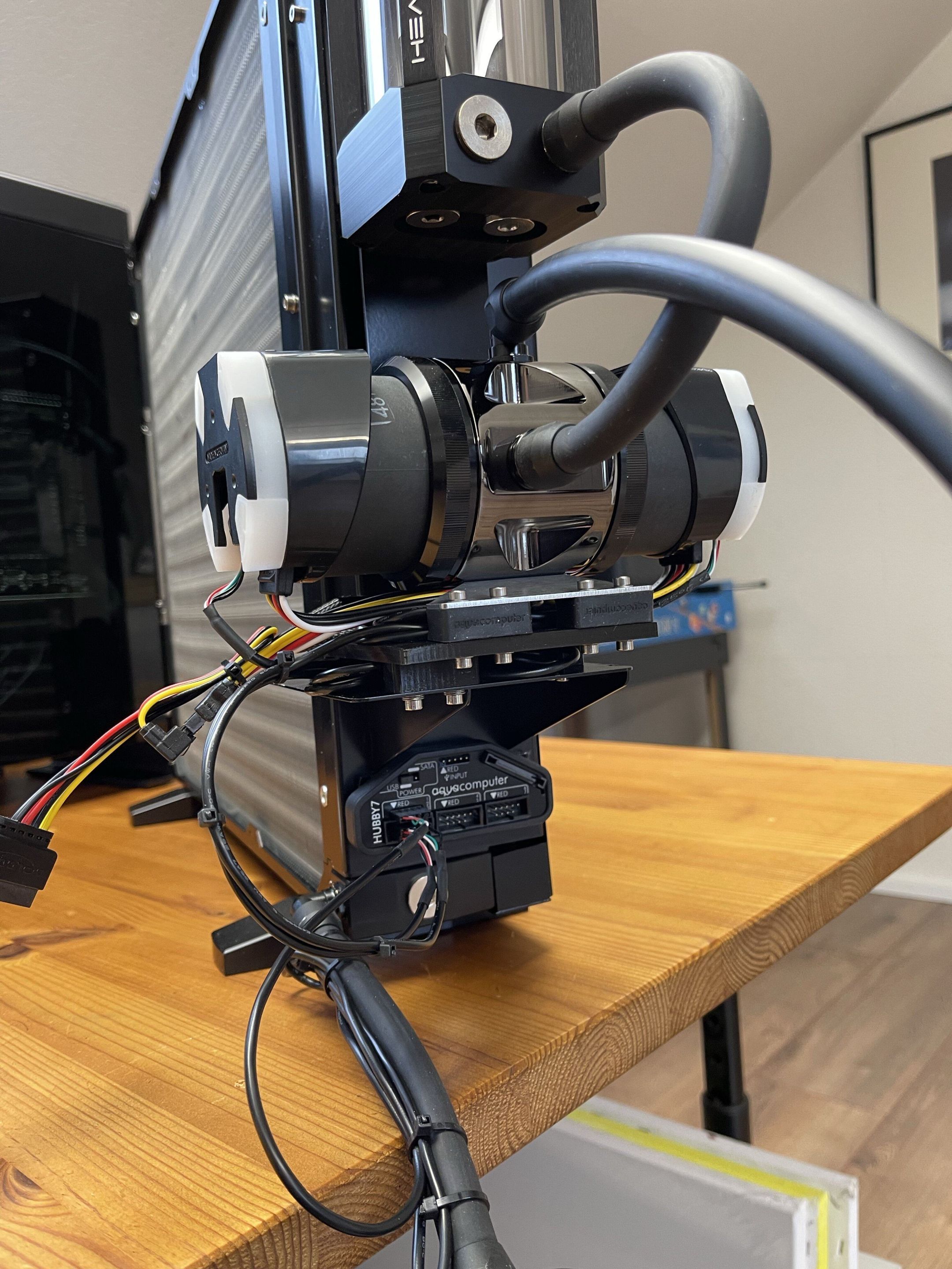 Ich habe dieses Problem ebenfalls, ebenfalls mit dem Dual D5 Top. Als Reservoir habe ich eine FLT240 davor, dazu einen HK IV Pro CPU Block und einen HK Block fuer die 6800XT und einen MORA.
