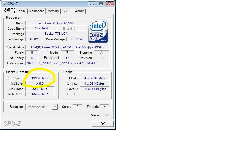 Auffallend der CPU Takt o,O Wieso 2 Ghz? Da sollte doch 2,83 Ghz stehen...