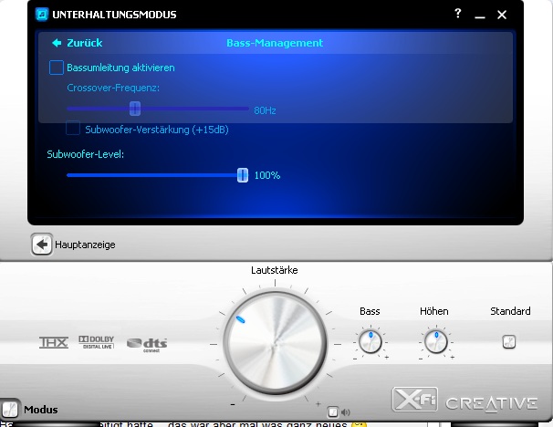 Meinst du beim Mixer (siehe Bild) ?das sollte bei den lautstärkeeinstellungen zu finden sein, wo man -zumindest im stereobereich- rechts/links fader hat und da gibt es eine zweite seite wo bassumleitung und bassboost stehen sollten. sicher bin ich mir nicht, habe den treiber schon lange nicht mehr so genau danach durchforstet weil stereo.