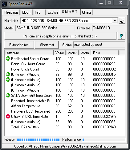Hallo Leute meine Samsung 830 128GB hat komische S.M.A.R.T Werte und nicht alle Systemfunktionen funktionieren noch.