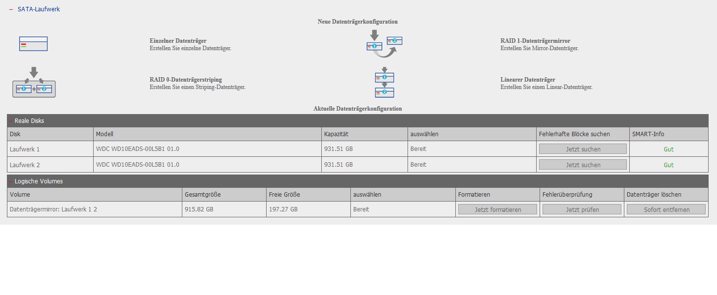 Die WD30EURS werde ich wohl zurück schicken. Dann lieber die 135,00 € für ein ganz neues NAS mit ganz neuen Festplatten sparen...