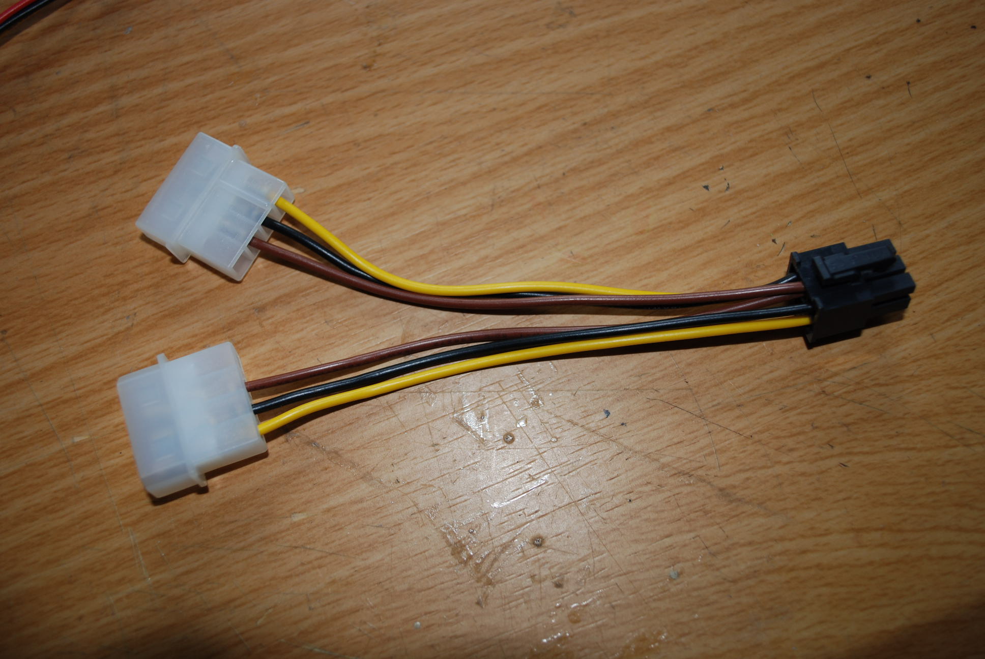 Wenn du keinen PCIe am Netzteil hast (Weil bild 2 auch der Adapter ist^^) dann musst du bei verwendung des Adapters drauf achten, den Strom möglichst aus 2 unterschiedlichen 12v schienen zu entnehmen.
