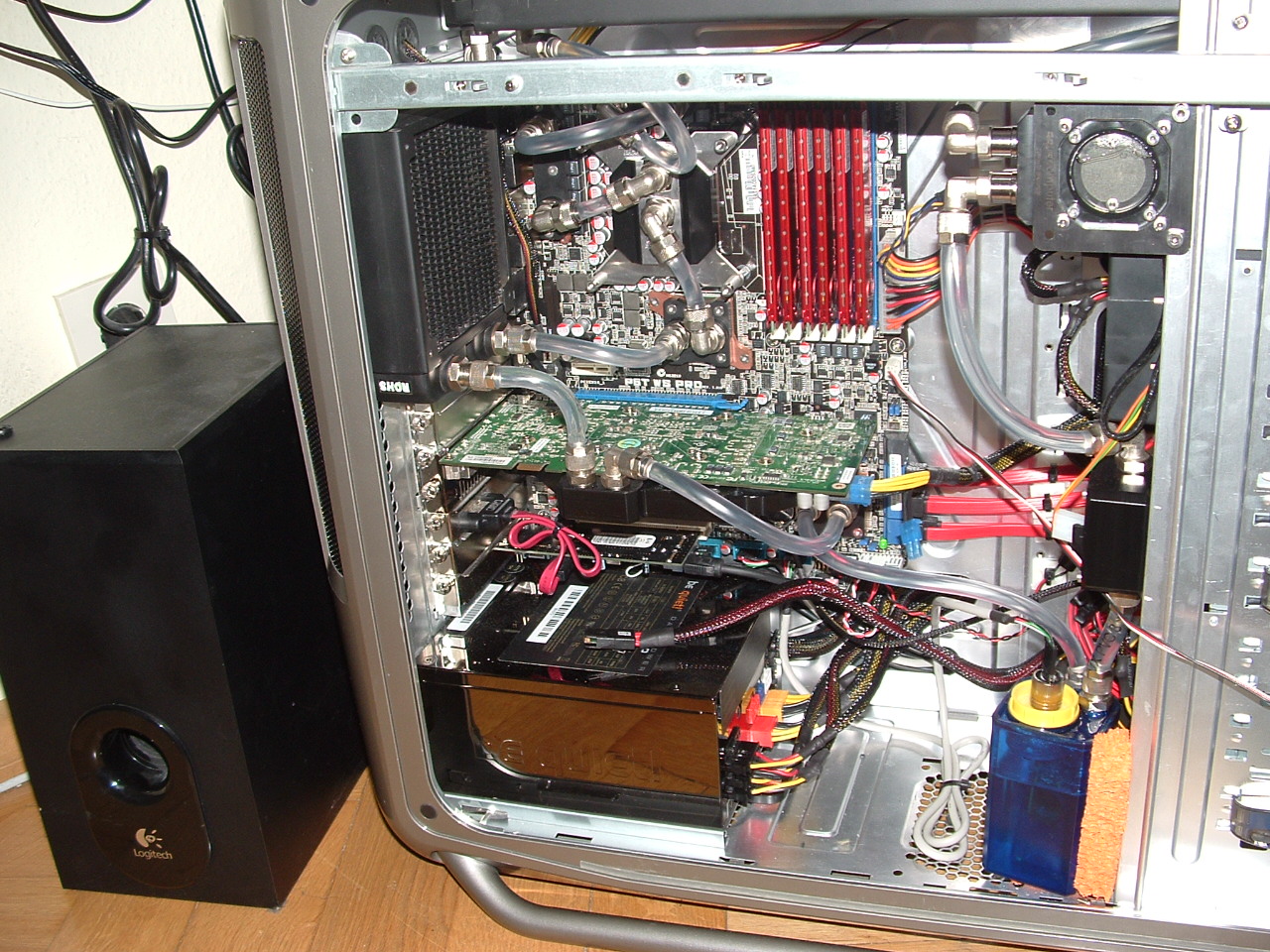 ASUS Crosshair II, AMD Phenom II X4 940 BE, ASUS GTX 295, CREATIVE X-FI Elite Pro, Silverstone RAVEN, Aquastream XT USB Ultra, Aquaero, Dualradi, MO-RA, Graka wassergekühlt, CPU wassergekühlt.